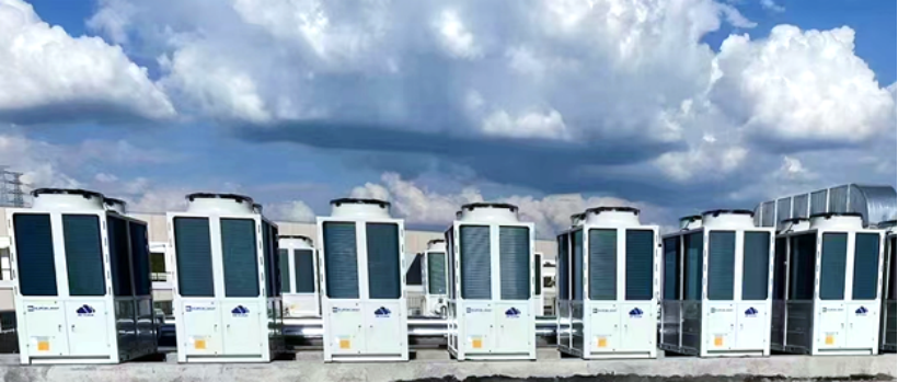 項(xiàng)目采用13臺(tái)大型超低溫全變頻風(fēng)冷熱泵機(jī)組提供四季冷暖服務(wù)。機(jī)組采用EVI噴氣增焓技術(shù),可實(shí)現(xiàn)-32℃超低溫制熱,配合智能變頻調(diào)節(jié)系統(tǒng),全年綜合能效突破3.8,較傳統(tǒng)系統(tǒng)節(jié)能30%以上。此外,機(jī)組大模塊設(shè)計(jì)完美契合大型商業(yè)項(xiàng)目的經(jīng)濟(jì)性需求,不僅大幅縮減安裝所需面積,更有效降低安裝成本,實(shí)現(xiàn)經(jīng)濟(jì)效益與環(huán)保效益的雙贏。